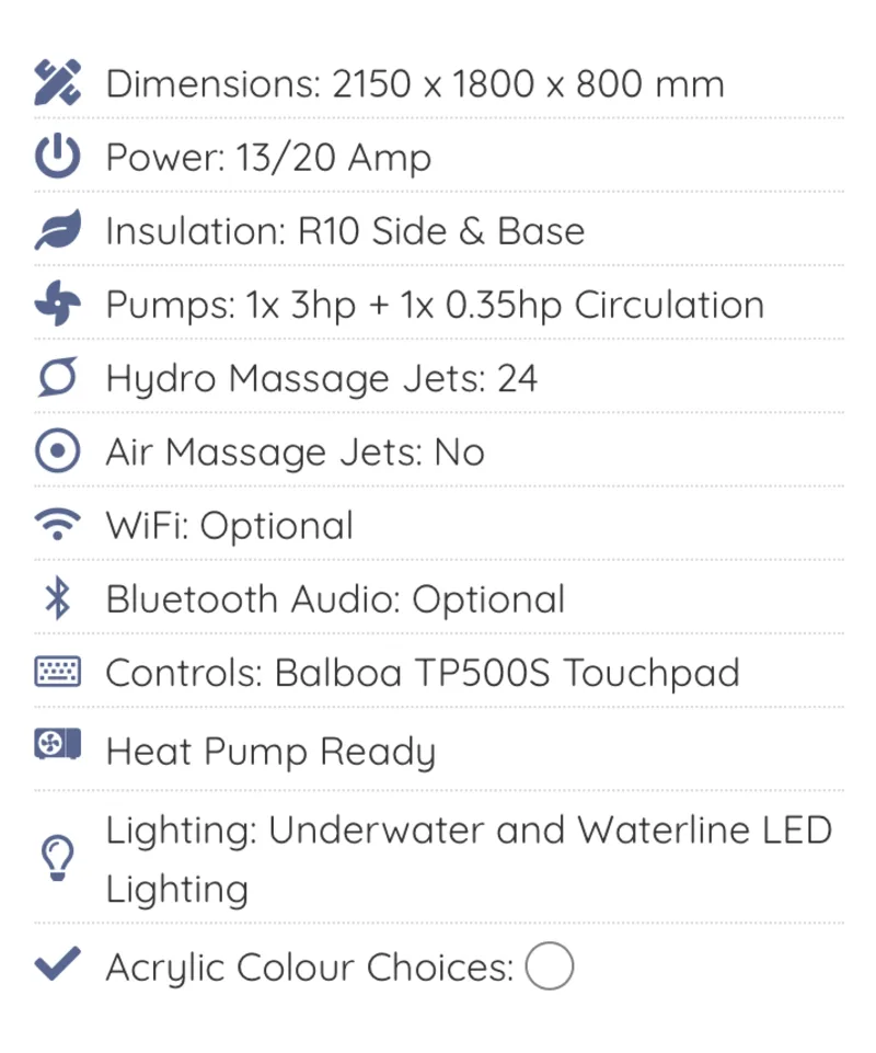 Chromotherapy lighting, or colour therapy, enhances physical and emotional well-being through the calming and rejuvenating effects of light and colour. Integrated into hot tubs with a large under-water LED and water level LEDs, these lights create a spa-like atmosphere, with each colour offering distinct benefits: blue promotes tranquillity, green fosters balance, and red invigorates. Chromotherapy transforms your hot tub into a haven of relaxation and sophistication, allowing you to unwind, reduce stress, and elevate your outdoor space with the ultimate blend of luxury and wellness
